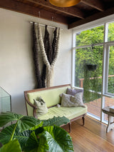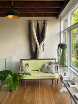 Gently brush vacuum the artwork if required to prevent the build up of dust and dirt as both may, if not managed, discolour the wool overtime. The frequency of brush vacuuming will ultimately be governed by the environment in which the artwork is hung.
