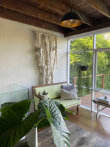 Gently brush vacuum the artwork if required to prevent the build up of dust and dirt as both may, if not managed, discolour the wool overtime. The frequency of brush vacuuming  will ultimately be governed by the environment in which the artwork is hung.