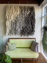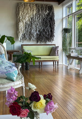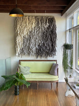 Gently brush vacuum the artwork if required to prevent the build up of dust and dirt as both may, if not managed, discolour the wool overtime. The frequency of brush vacuuming will ultimately be governed by the environment in which the artwork is hung.