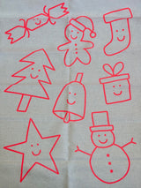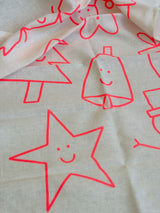 Add a dose of festive fun to your holiday cooking and entertaining with this delightful pure linen tea towel featuring nostalgic Christmas motifs with cheerful smiley faces. Hand screen-printed in neon coral pink by Sydney-based creative studio Me and Amber, this charming tea towel combines retro Christmas vibes with modern Australian design.