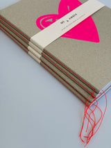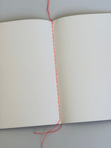 - Neon orange binding - Sewn bound with charming loose threads