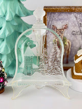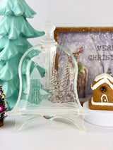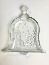 Add a touch of nostalgic elegance to your Christmas entertaining with this charming vintage pressed glass plate from the Celebrations collection. Featuring an intricate embossed design of a Christmas tree and church with a bell theme, this clear glass plate is perfect for serving condiments, nibbles, candies, or chocolates at your holiday gatherings. Made in Indonesia in the 1990s, it brings authentic vintage character to your festive table.