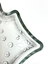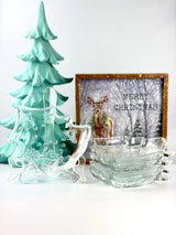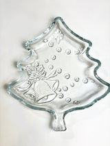 Add a touch of nostalgic elegance to your Christmas entertaining with this charming set of five vintage pressed glass plates. Shaped like festive Christmas trees with embossed designs of bells, holly, and a star on top, these versatile plates are perfect for serving condiments, nibbles, candies, or chocolates at your holiday gatherings. Made in Indonesia in the 1990s, they bring authentic vintage character to your festive table.