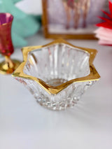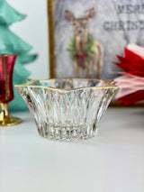 Create magical Christmas ambiance with this elegant Mikasa Diamond Fire votive. Made from high-quality clear crystal glass, this stunning piece features a six-point star shape with vertical ridges that beautifully diffuse candlelight, creating a glowing, shimmering effect that transforms any space. Produced from 1985, this vintage treasure brings Mikasa's legendary quality and timeless design to your festive celebrations.