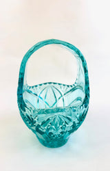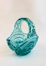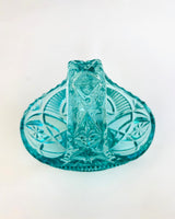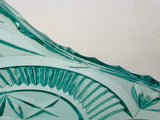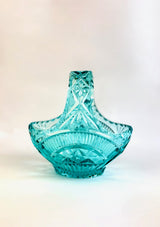 This bonbonnière—a traditional bon bon or sweet dish—features the clean lines and geometric precision that defined Art Deco aesthetics. The stunning aqua blue colour, achieved through careful glass formulation, remains vibrant nearly a century later. The diamond-cut pattern catches and refracts light beautifully, creating sparkle from every angle.