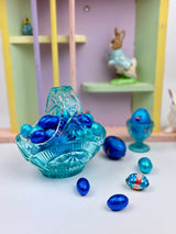 A highly collectible piece that's both beautiful and functional. Perfect as a bon bon or candy dish on a coffee table, a vanity dish for jewellery or cotton wool balls in the bathroom, a decorative accent on a shelf or sideboard, or a makeup brush holder on a dressing table. The aqua blue colour adds a pop of vintage glamour wherever it's displayed.
