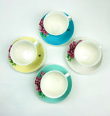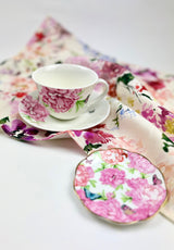 This set is one of four beautiful colourways in the Everyday Friendship Collection. Unlike traditional fine bone china, this collection has been crafted without gold banding, making it both dishwasher and microwave safe—perfect for daily enjoyment without sacrificing beauty or quality. The delicate floral design and butterfly motif combine traditional English porcelain artistry with contemporary sensibility and everyday practicality.