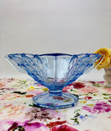 A highly collectible piece for Art Deco enthusiasts and vintage glass collectors. Perfect as a dramatic fruit bowl on a dining table, a sculptural centrepiece filled with seasonal decorations, or displayed empty on a sideboard where the shell pattern and wing handles can be admired. The substantial size and striking design make it ideal for both formal entertaining and everyday elegance. Safe for food use.