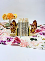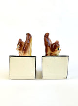 This delightful pair of ceramic bookends captures the playful spirit of 1950s design. While unmarked, the style and quality suggest Japanese manufacture for the Western market during the post-war export boom. These mid-century pieces exemplify the charming kitsch aesthetic that defined the era, bringing nostalgic charm and functional beauty to any bookshelf, mantel, or display.