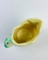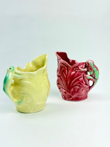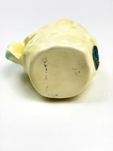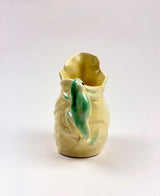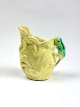 This charming ceramic creamer showcases the artistry of Rosedale Ware, one of Australia's beloved mid-century pottery manufacturers. Featuring a distinctive figural frog handle in vibrant green and delicate gum-leaf relief design, this piece exemplifies the whimsical charm and quality craftsmanship that made Australian studio pottery collectible both locally and internationally.