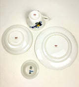 A complete bone china tea service comprising teacup, saucer, and coupe plate in the elegant Blue Bird pattern (S3274). Based on an original 1838 design, this pattern showcases Spode's mastery of delicate transferware decoration enhanced with gold gilding. The Blue Bird design was produced for over 150 years before being discontinued in 1990, making surviving pieces increasingly collectible.