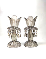 Fair vintage condition with character consistent with age and use. Base and stem of both holders are solid with no damage. Some chips to cut glass areas, typical of vintage pieces. A small chip to the underside of one tulip leaf that does not affect function. Minor damage to one crystal drop. All imperfections are reflected in the price and photographed for transparency. These pieces remain beautiful, functional, and display beautifully.