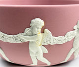 - Design: Pink Jasperware with white relief cherubs and garland motif