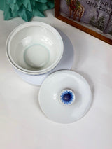 This lidded dish is in excellent vintage condition. No chips, cracks, crazing, or restoration. Slight discoloring to internal base in one part (see image).
