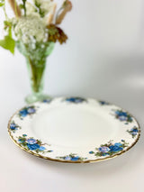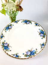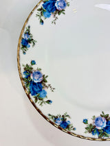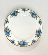 Bring serene beauty to your table with this Royal Albert Moonlight Rose dinner plate in the classic Montrose shape. Introduced in 1987 as a cooler-toned alternative to the beloved Country Roses pattern, Moonlight Rose features elegant blue and indigo roses complemented by muted green foliage and a rich 22-carat gold stippled rim. This highly collectible discontinued pattern is increasingly sought-after by Royal Albert enthusiasts worldwide. Perfect for collectors replacing a cherished piece from their set, completing their Moonlight Rose collection, or anyone who appreciates tranquil English elegance with a touch of luxury.
