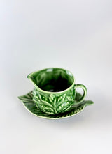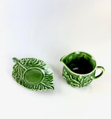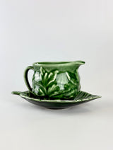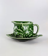 A charming piece of mid-century English pottery, this Sylvac mint sauce jug and saucer showcases the deep green glaze and naturalistic leaf design that made Sylvac beloved across Britain. Crafted in earthenware ceramic with rich majolica-style glazing, this practical yet decorative piece brings vintage character and warmth to any table or display.