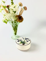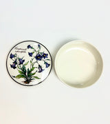 Bring timeless charm to your home with this Villeroy & Boch lidded trinket box from the beloved Botanica collection. Featuring the exquisite botanical illustration of Campanula Rotundifolia (blue Scottish bellflowers) with an elegant brown trim, this piece showcases the exceptional artistry that made the Botanica collection so cherished by collectors. Produced between 1990 and 2008, this trinket box is part of a discontinued series that began in 1983, making it increasingly sought-after. Crafted from Vitro Porcelain and made in Luxembourg, Villeroy & Boch has been synonymous with quality European ceramics since 1748, and this piece exemplifies their commitment to combining beauty with functionality.