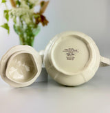 Bring timeless elegance to your tea service with this beautiful teapot from the Villeroy & Boch Petite Fleur collection. Introduced in 1983, the Petite Fleur pattern features a delicate scattering of hand-painted floral motifs, including horned violets, daisies, rose hips, and forget-me-nots, creating a classic country-house style that has captivated collectors for over 40 years. The hand-painted rim adds an artisanal touch that showcases Villeroy & Boch's commitment to craftsmanship. With its enduring popularity and versatile design that seamlessly blends with various décor styles, this teapot is both a practical everyday piece and a collectible treasure.