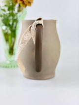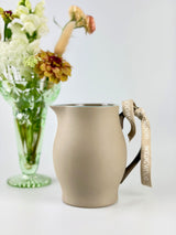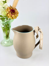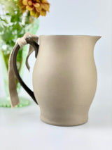 Bring stunning contemporary elegance to your table with this beautiful jug/pitcher designed by Louise Rosie for Wedgwood. Named "Nature's Canvas" in the hard-to-find Sandstone color, this piece features a matte, unglazed stoneware exterior with a high-gloss interior glaze and hand-applied "robin's egg blue" edge line on the rim. The slightly darker handle creates a beautiful contrast of colors. This is a beautiful contemporary piece that deserves to be used and appreciated.