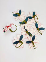 Retro Festive Flower Napkin Rings - Set of 8 Cotton with Green Leaves